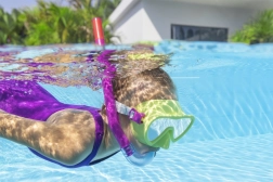 Klare Gläser mit UV-Schutz und eine weiche Gesichtsdichtung verhindern das Eindringen von Wasser. Das verstellbare Kopfband hält die Maske auch beim Toben im Wasser sicher an Ort und Stelle.