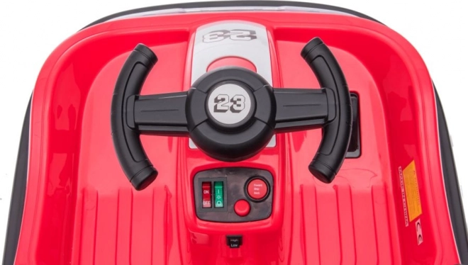 Das Lenkrad mit übersichtlichen Bedienelementen und das Gaspedal erleichtern die intuitive Steuerung. Das Auto eignet sich für den Innen- und Außenbereich und unterstützt die Entwicklung von Motorik und Koordination. Das attraktive „Hot Racing“-Design mit der Nummer 23 begeistert kleine Rennfahrer.