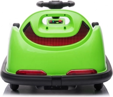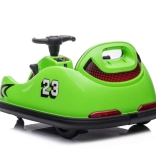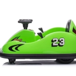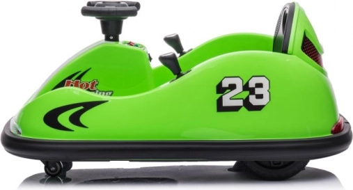 Dieses grüne Bumpercar mit der Nummer 23 und Rennakzenten ist ideal für die ersten Fahrerlebnisse. Die robuste Kunststoffkarosserie mit weichen Rändern hilft, Stöße zu dämpfen und erhöht die Sicherheit beim Spielen. Die einfache Steuerung über das Lenkrad und das übersichtliche Bedienfeld sind kindgerecht gestaltet.