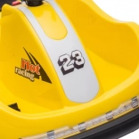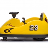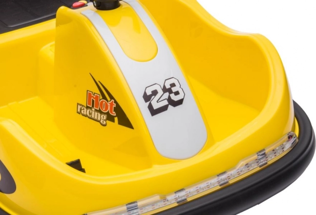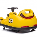 Das gelbe elektrische Bumper-Car-Kinderauto ist ideal für die ersten Fahrerlebnisse. Die kompakte Bauweise, der niedrige Schwerpunkt und der umlaufende Stoßfänger sorgen für Stabilität und Schutz beim Fangen spielen wie auch beim Drehen auf der Stelle. Der Sitz mit Sicherheitsgurt und die übersichtliche Bedienung ermöglichen Kindern komfortables Fahren und geben Eltern ein gutes Gefühl.