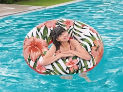 Der stylische BESTWAY-Schwimmring mit tropischen Blumen ist die perfekte Wahl für Entspannung und Wasserspaß. Dank des großen 119 cm Durchmessers bietet er Komfort und Stabilität – egal, ob Sie schwimmen lernen oder einfach auf der Oberfläche treiben. Das robuste PVC-Material hält sowohl Salzwasser als auch chloriertem Wasser stand und ist leicht zu pflegen.