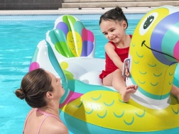 Sein robustes PVC-Material sorgt für Langlebigkeit und UV-Beständigkeit. Dieses Spielzeug ist sowohl für Kinder als auch für Erwachsene geeignet und perfekt zum Entspannen am Meer, am See oder im Pool. Mit einer maximalen Tragfähigkeit von 45 kg bietet es einen sicheren und unterhaltsamen Platz zum Sitzen und Ausruhen im Wasser.