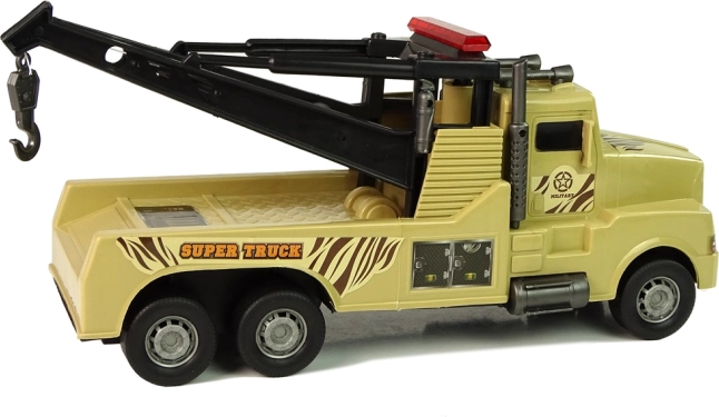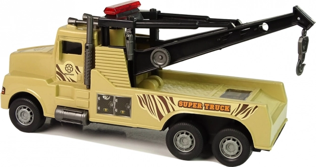 Dieser detailreich gestaltete Abschleppwagen „Super Truck“ ist ideal für actionreiche Szenarien auf der Kinderbaustelle oder bei „Verkehrsunfällen“. Der hintere Kran mit ausziehbarem Seil und Haken wird über eine praktische seitliche Kurbel bedient, sodass das Kind ein anderes Auto leicht befestigen und auf das „Schlachtfeld“ oder den Parkplatz versetzen kann.