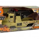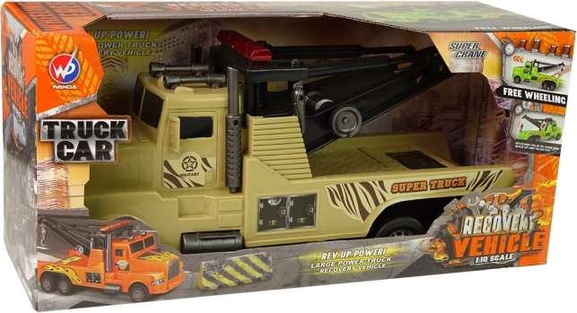 Ziehe das Fahrzeug nach hinten und lass es los – der Abschleppwagen fährt aus eigener Kraft nach vorn. Spielspaß ganz ohne Batterien.