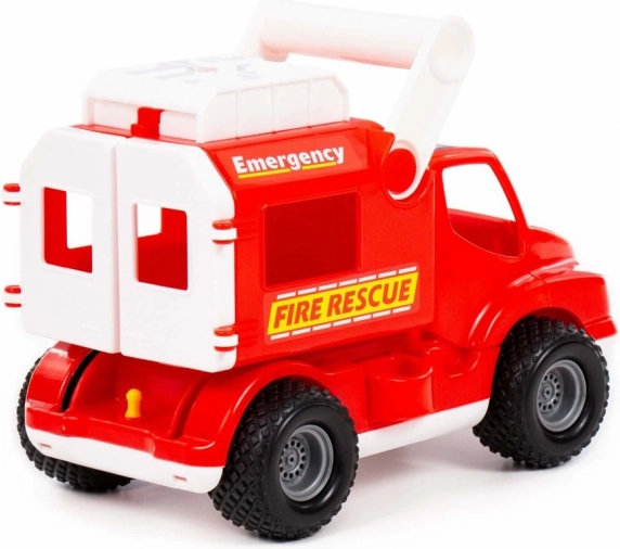 Entdecken Sie das robuste ConsTruck-Feuerwehrauto, das Fantasie, Motorik und logisches Denken fördert. Dank der Gummiräder fährt es auf verschiedenen Untergründen besonders geschmeidig, und die ausziehbare Leiter sowie realistische Details sorgen bei jedem Einsatz für Spannung. Öffnende Hecktüren und das obere Fach bieten Platz für Figuren oder kleine Schätze.