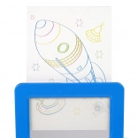Die magische, hinterleuchtete Tafel in Blau macht aus jeder Zeichnung ein Erlebnis. Einfach eine Schablone einlegen, die Linien mit Neon-Stiften nachzeichnen und den Knopf drücken – die Zeichnung leuchtet auf und tritt mit der beiliegenden 3D-Brille räumlich hervor. Nach dem Zeichnen wischen Sie alles mit einem Tuch ab und können sofort neu beginnen.