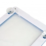 Zeichnen Sie die beidseitigen Schablonen nach oder erstellen Sie eigene Motive. Dank der Saugnäpfe lässt sich die Tafel leicht an Fenstern oder glatten Oberflächen befestigen.