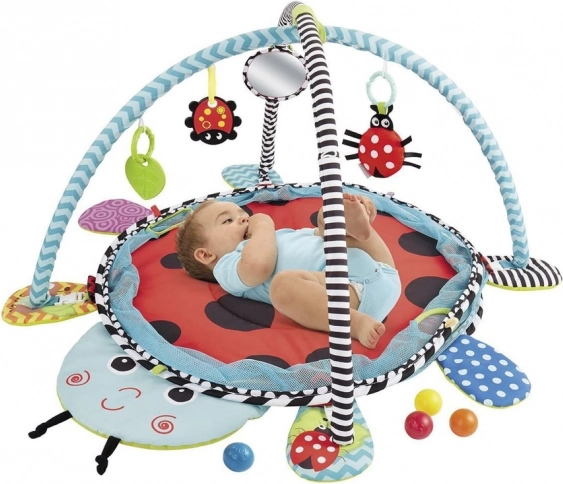 Die Marienkäfer-Spieldecke schafft für das Baby einen bequemen und sicheren Ort, um die Welt zu entdecken. Die weiche Oberfläche ist angenehm zu berühren, kräftige Farben und Formen ziehen die Aufmerksamkeit auf sich und fördern die visuelle und taktile Stimulation. Die Decke wächst mit dem Kind mit und lässt sich leicht an die aktuelle Entwicklungsphase anpassen.