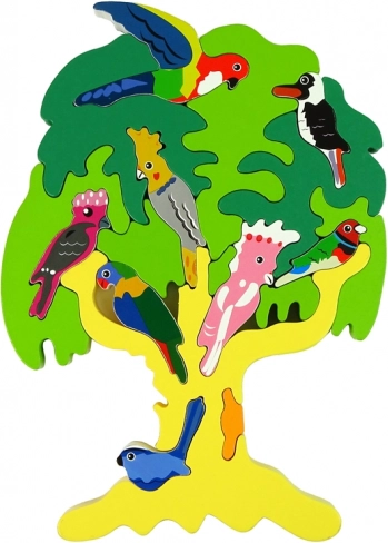 Holzbaum-Puzzle mit Papageien