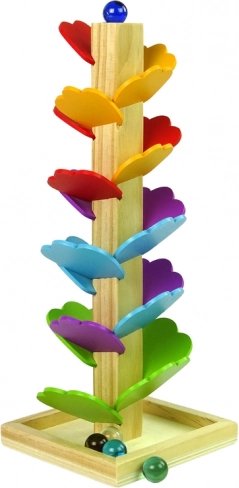 Holzspielzeug ist aufgrund seiner Zeitlosigkeit und Widerstandsfähigkeit eine ausgezeichnete Wahl für Kleinkinder. Dieser Baum mit Murmelbahn ist so gestaltet, dass er die Motorik, kreatives Denken und Farberkennung fördert. Kinder lernen Präzision, indem sie farbige Blätter an die richtigen Stellen am Baum setzen, während sie den Weg der herabfallenden Murmeln beobachten.