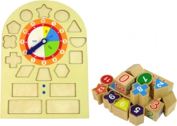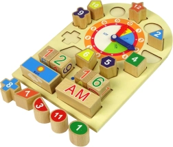 Holzuhr mit Sortierfunktion und bunten Zahlen zur Bildung