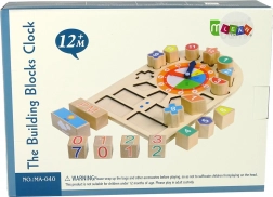 Einstellung der richtigen Uhrzeit mit bunten Klötzchen.