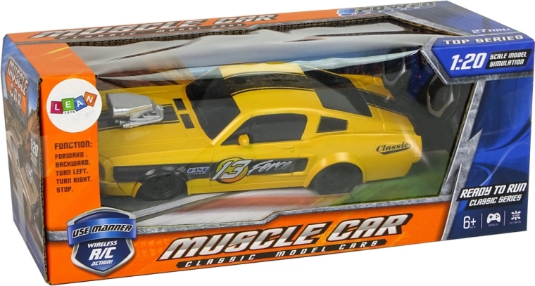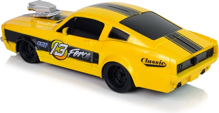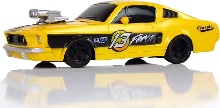 Erleben Sie actionreiche Rennen mit dem klassischen Sportmodell mit der Nummer 13 und dem markanten gelb‑schwarzen Design. Das Auto im Maßstab 1:20 bildet Karosseriedetails originalgetreu nach und hält dank Gummireifen die Spur auf glatten Oberflächen. Die einfache RC-Fernbedienung mit zwei Hebeln ermöglicht intuitives Steuern vorwärts/rückwärts und zur Seite.