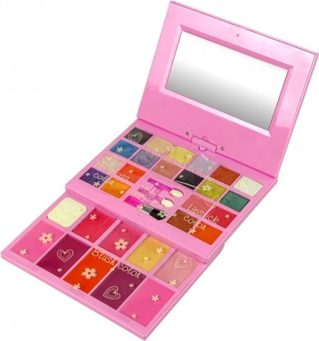 Diese Palette besitzt einen eingebauten drehbaren Spiegel, der ideal für eine präzise Anwendung des Make-ups ist. Die Kosmetikprodukte sind sicher für Kinderhaut und können leicht mit Tüchern oder Watte und Seife sowie warmem Wasser entfernt werden.