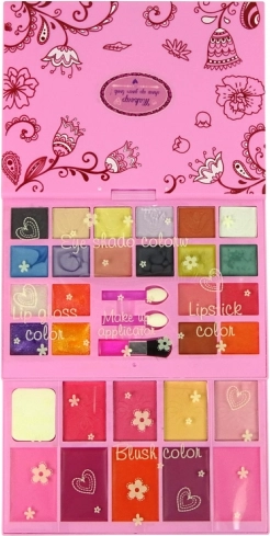 Jedes kleine Mädchen träumt davon, wie ihre Mutter zu sein. Mit dieser Palette kann sie die Grundlagen des Schminkens auf ihre eigene Weise erlernen. Die Palette enthält Lidschatten, Rouge, Glosse und Lippenstifte, alles in einer übersichtlichen und eleganten Verpackung.