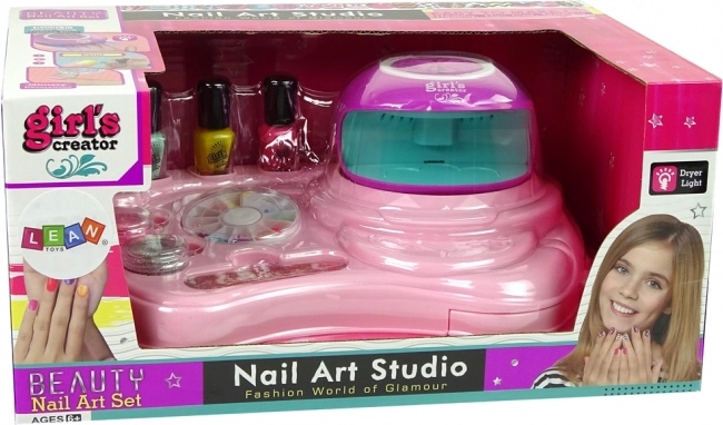 Simuliert ein echtes Nagelstudio mit einer Lampe zum Trocknen der Nägel. Erlaubt es Kindern, professionelle Nagelpflege zu Hause zu genießen.