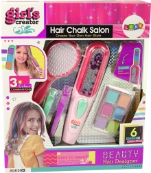 Lassen Sie Ihre Tochter neue Stile durch das Haarfärbeset entdecken, das alles Notwendige zur Dekoration der Haare enthält. Das enthaltene Glätteisen ermöglicht ein einfaches Auftragen der Farben und das Erstellen von Frisuren, die alle Freundinnen in der Schule sicher bewundern werden. Für die einfache Anwendung wählen Sie einfach drei Farben aus, legen Sie sie in den Applikator, besprühen Sie das Haar mit Wasser und ziehen Sie das Glätteisen entlang. Die Frisur ist schnell und mühelos fertig!