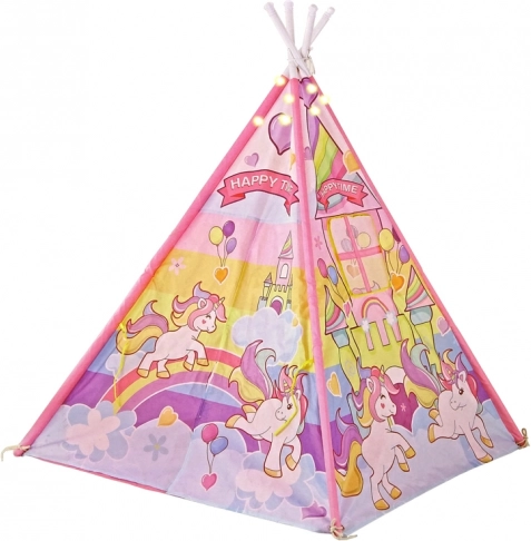 Das Zelt lässt sich leicht aufbauen und bietet Kindern Raum zum Spielen oder Ausruhen nach einem anstrengenden Tag. Sein Dach ist mit fröhlichen Einhörnern und bunten Burgen dekoriert, die die kindliche Fantasie unterstützen.