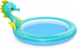 Der aufblasbare Wasserspielplatz für Kinder von BESTWAY in maritimen Farben bietet an heißen Tagen sichere Erfrischung und jede Menge Spaß. Der flache Pool und das freundliche Seepferdchen-Motiv mit Wassersprühfunktion laden zum Spielen und sanften Abkühlen ein – ideal für die Kleinsten ab 2 Jahren.