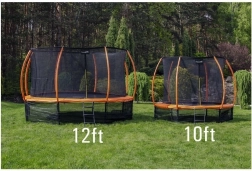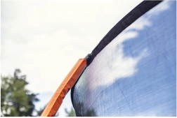 Das hohe Schutznetz verhindert das Herunterfallen außerhalb des Trampolins und sorgt für ruhige Nerven bei den Eltern sowie ausgelassenes Springen der Kinder.