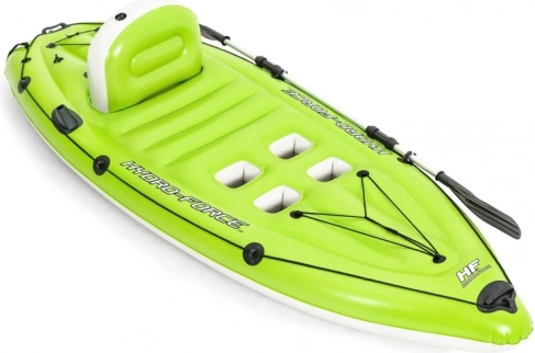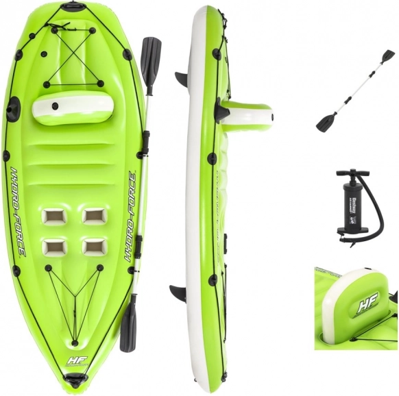 Entdecken Sie die Freiheit auf dem Wasser mit dem kompakten aufblasbaren HYDRO-FORCE-Kajak von Bestway. Dank des robusten Vinyls ist das Kajak reißfest, verfügt über eine bequeme aufblasbare Rückenlehne, vier Fußstützen für unterschiedliche Körpergrößen und ein umlaufendes Sicherheitsseil. Ideal für ruhige Seen, Stauseen und Angelausflüge.