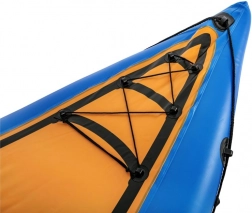 Für präzise Spurführung und sicheren Zug ist das Kajak mit zwei abnehmbaren Finnen ausgestattet, die sich leicht an die Bedingungen anpassen lassen. Praktische Stauräume mit Bungee-Seilen am Bug und Heck bieten Platz für Kleinigkeiten, Snacks und leichtes Equipment. Nach der Tour lässt sich das Boot schnell entlüften und dank des geringen Gewichts leicht transportieren.