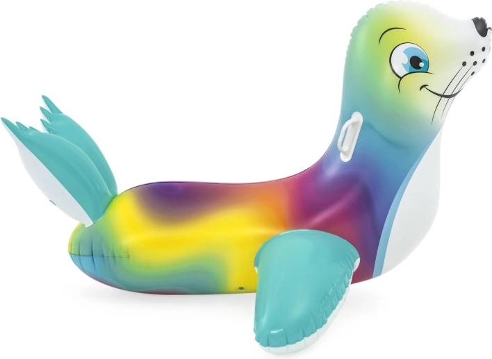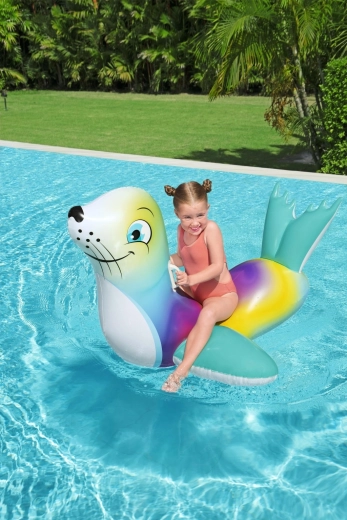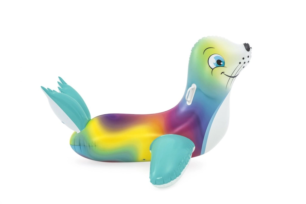 Genießen Sie unbeschwerte Sommerfreuden mit der bunten aufblasbaren Robbe – ideal für Kinder ab 3 Jahren. Zwei praktische Griffe gewährleisten einen sicheren Halt und bessere Balance, während die glatte, robuste Oberfläche Komfort beim Spielen und Ausruhen auf dem Wasser bietet.