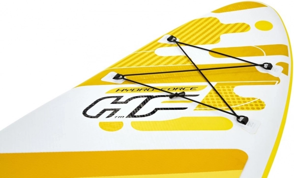 Das aufblasbare Paddleboard Hydro-Force ist für Spaß auf dem Wasser geschaffen. Sein universelles Design sorgt für hervorragende Manövrierfähigkeit und Sicherheit für alle – ob für entspanntes Paddeln auf dem See oder einen actionreichen Tag auf dem Meer. Das Material ist wetter- und stichfest und bietet Zuverlässigkeit unter allen Bedingungen.