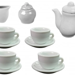 Dieses Spielzeug ist geeignet für Kinder ab 3 Jahren und erfüllt die Norm EN71 und die CE-Zertifizierung. Die Maße der Teller sind 6,5 cm, die Maße der Tassen sind 5 cm x 3,5 cm x 4,5 cm und die Maße der Verpackung sind 30 cm x 21 cm x 6 cm.