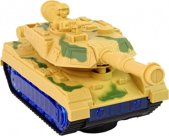 Der Panzer hat eine Tarnlackierung und Kettenräder, die die Fahrt eines echten Panzers nachahmen. Eine Überraschung ist, dass die Räder mithilfe von blauen LED-Dioden leuchten. Nach dem Einschalten dreht sich die Kanone von Seite zu Seite und im Hintergrund sind Motorgeräusche zu hören. Jedes Detail entspricht einem echten Fahrzeug. Der Panzer ist einer der Helfer für kleine Schlachten.