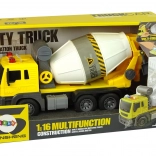 Dieser gelbe Betonmischer ahmt ein echtes Baufahrzeug realistisch nach und fördert Fantasie und Feinmotorik. Die drehbare Trommel und die schwenkbare Auslaufrutsche ermöglichen realitätsnahes Spielen auf der Baustelle, während Licht- und Soundeffekte (Fahrgeräusche, Hupe, Warnleuchten) dem Spiel Dynamik verleihen.