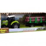 Dieser grüne Traktor mit abnehmbarem Anhänger und Kunststoffstämmen bringt Kindern ein authentisches Bauernhoferlebnis. Per Knopfdruck werden Motor- und Fahrgeräusche aktiviert, der vordere Scheinwerfer beleuchtet den Weg und das realistische Design fördert Fantasie und kreatives Spiel.