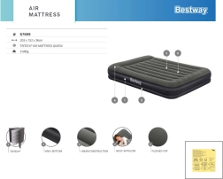 Genießen Sie erholsamen Schlaf zu Hause und beim Camping mit der doppelseitigen Luftmatratze Bestway Queen Tritech. Die robuste Tritech-Konstruktion sorgt für Stabilität und Langlebigkeit, die angenehm beflockte Oberfläche bietet Komfort und das integrierte Kopfkissen stützt den Kopf. Dank des Schnellablassventils lässt sich die Matratze leicht auf- und abpumpen und kann zusammengelegt bequem verstaut oder auf Reisen mitgenommen werden.
