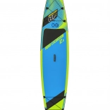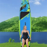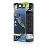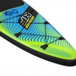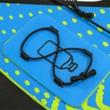 Das Board ist sofort einsatzbereit – im Set finden Sie ein verstellbares Paddel, eine Handpumpe mit Manometer, eine abnehmbare Mittelfinne und einen strapazierfähigen Transport‑Rucksack. Praktische Bungee‑Leinen am Bug halten Ihre Ausrüstung sicher, außerdem gibt es eine Halterung/Spann‑Gummi für die Flasche.