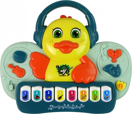 Das interaktive Piano Kačenka ist das perfekte Instrument für die ersten Begegnungen von Kindern mit Musik. Beim Spielen verbessern die Kinder ihre manuellen und motorischen Fähigkeiten und entdecken die Welt um sich herum über die Sinne - Beobachtung, Hören und Tasten. Das Spielzeug ist sorgfältig in lebendigen Farben und mit dem Entenmotiv hergestellt, das zum Entdecken und Kennenlernen einlädt. Leuchtende Elemente und Klangeffekte ziehen die Aufmerksamkeit der Kinder an und helfen ihnen, die umgebende Welt zu erkennen.