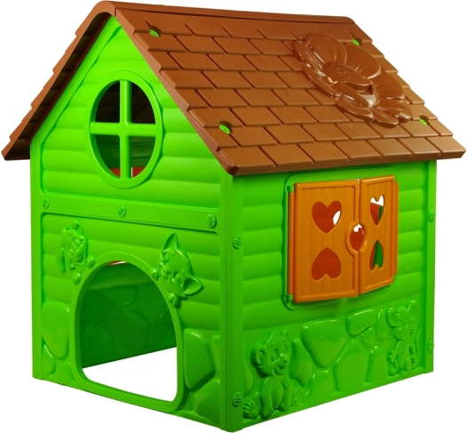 Genießen Sie lange sonnige Tage mit dem Outdoor-Plastikhaus, das Ihren Kindern perfekten Schutz und Spaß bietet. Dieses Haus wurde entwickelt, um die Fantasie der Kinder zu bereichern und bietet realistische Details wie Fenster und Türen.