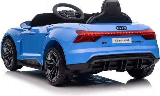 Das blaue elektrische Auto ist detailgetreu nach dem realen Modell Audi RS e-tron GT entworfen, einschließlich realistischer Scheinwerfer und Spiegel.
