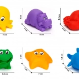 Sechs bunte Figuren in Form von Meerestieren bieten endlosen Spielspaß im Wasser oder am Strand.
