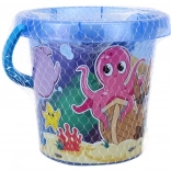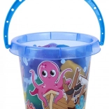 Der Eimer mit blauem Griff und Meeresmotiven ist ideal zum Transport und zur Aufbewahrung von Spielzeug.