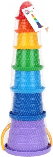 Sechs Becher in leuchtenden Farben zum Turmbauen oder Ineinanderstecken – ideal zur Förderung der Koordination und der Farberkennung.