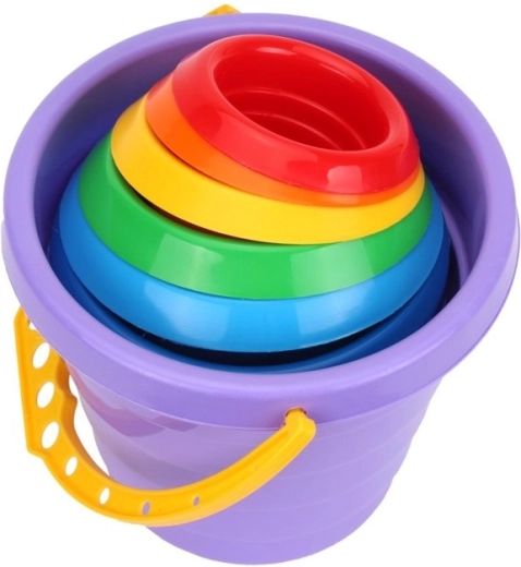 Entdecken Sie ein unterhaltsames Lernspielzeug für die Kleinsten: ein Set mit 6 farbigen Bechern und einem praktischen Eimer mit Henkel. Kinder können die Becher nach Größe und Farbe sortieren, daraus einen Turm bauen oder sie ineinander stecken. Das Spiel fördert die Hand-Auge-Koordination, das räumliche Vorstellungsvermögen und die Geduld.