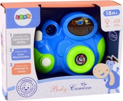 Diese unterhaltsame und sichere Kinderkamera hilft den Kleinsten, die Welt durch das Nachahmen der Erwachsenen zu entdecken. Beim Drücken der Tasten werden 3 Melodien, bunte Lichter wie ein Blitz und ein realistisches 'Klick'-Geräusch ausgelöst. Das drehbare Objektiv rasselt beim Drehen angenehm, was die Neugier weckt und die Feinmotorik fördert.