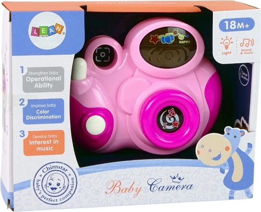 Beim Drücken der Tasten leuchten farbige „Blitz“-Lichter auf, es ertönt ein authentisches Auslöserklicken und es werden 3 Melodien abgespielt. Das drehbare Objektiv gibt beim Drehen zudem ein angenehmes rasselndes Klicken von sich, das Kinder begeistert und zu weiterem Entdecken motiviert.
