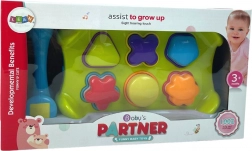 Das Spielzeug ist aus sicheren Materialien mit abgerundeten Kanten gefertigt. Im oberen Teil befinden sich sechs Öffnungen für verschiedene Formen, in den Klötzchen sind kleine Kügelchen, die sich beim Bewegen wie eine Rassel anhören. Ideal zur Förderung von Konzentration, Wahrnehmung und logischem Denken.