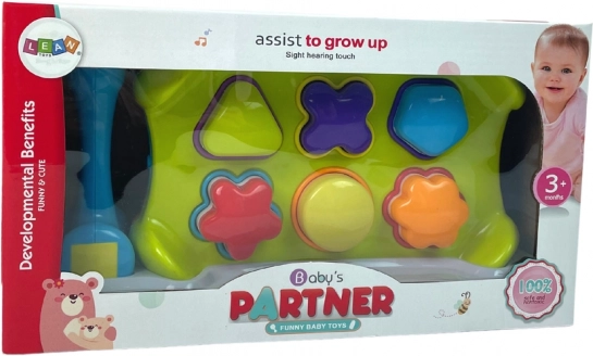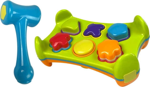Dieser beidseitige Sorter ist für freudvolles Lernen durch Spiel konzipiert. Kinder setzen verschiedene geometrische Formen in die passenden Öffnungen und können sie mithilfe des praktischen Hammers auf die andere Seite durchtreiben. Die farbenfrohe Gestaltung stimuliert den Sehsinn und lädt zum weiteren Entdecken ein.
