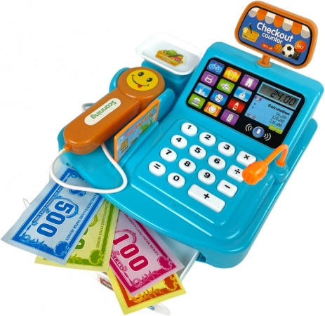 Funktionale Tastatur, Waage, Mikrofon und Kartenleser erweitern die Möglichkeiten des Kaufladenspiels und lehren Kinder die Grundlagen des Bezahlens mit Bargeld und Karte.