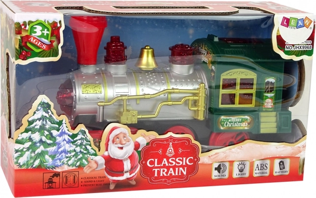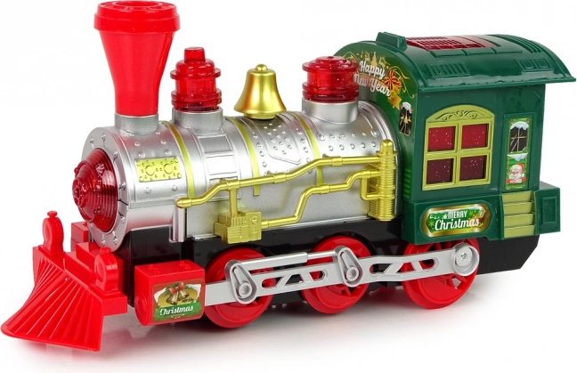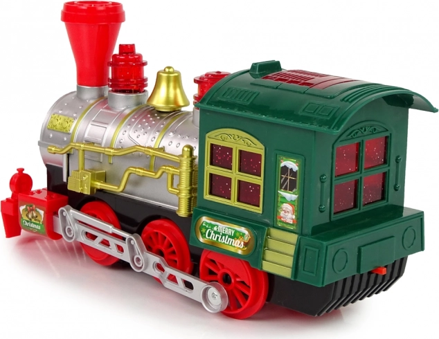 Die Lokomotive ist mit schönen, leuchtenden Farben und festlichen Details entworfen, die an die Weihnachtsatmosphäre erinnern.