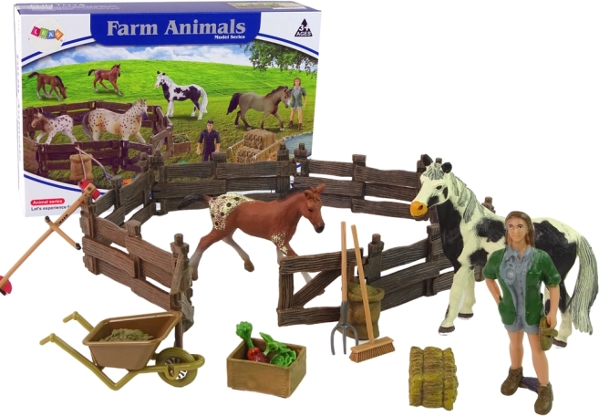 Baue und erkunde deinen eigenen Bauernhof mit realistischen Pferdefiguren und einem Holzzaun. Dieses unterhaltsame Set ermöglicht es Kindern, einen Ort für die Pferdepflege zu schaffen und die Grundlagen der Tierhaltung und täglichen Aufgaben eines Landwirts zu erlernen.