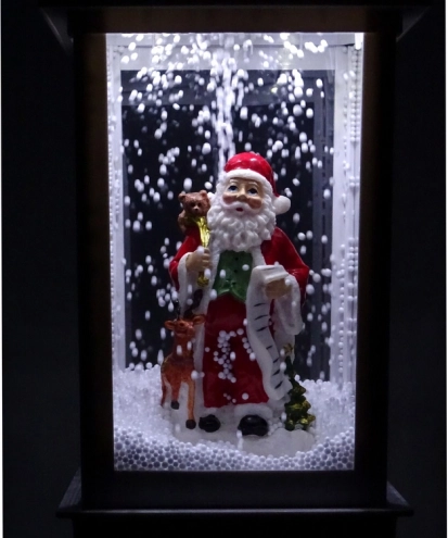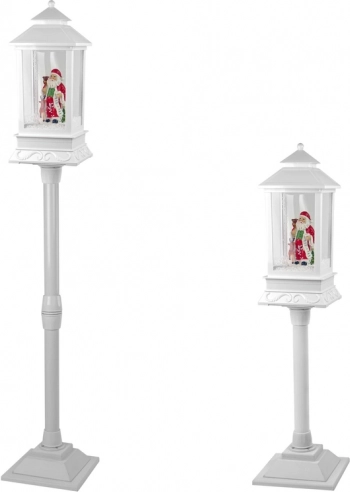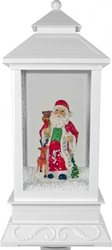 Diese elegante weiße Laterne ist wie geschaffen für die Weihnachtsdekoration. Im Inneren steht ein fröhlicher SANTA mit Geschenkesack und einer langen Wunschliste. Eine integrierte Pumpe zirkuliert den Schnee von der Basis nach oben, sodass es im Inneren ständig „schneit“ – ein bezauberndes winterliches Schauspiel. Das robuste Kunststoffgehäuse sorgt für geringes Gewicht und Langlebigkeit – so können Sie die Dekoration jedes Weihnachten wiederverwenden.