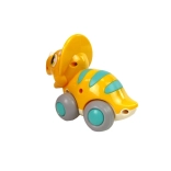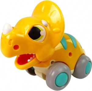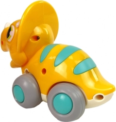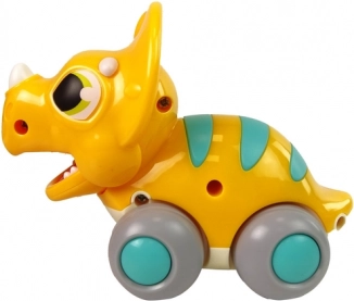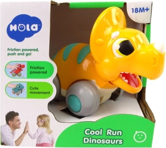 Dieser farbenfrohe Triceratops besticht durch ein fröhliches Design mit gelbem Körper und türkisfarbenen Streifen. Der Rückzug-Mechanismus ermöglicht eine einfache Fahrt auf glatten Flächen – das Kind drückt das Spielzeug auf den Boden, lässt los und der Dinosaurier fährt los, wobei er beim Fahren sein Mäulchen öffnet und schließt. Eine tolle Wahl für Spaß zu Hause und unterwegs.